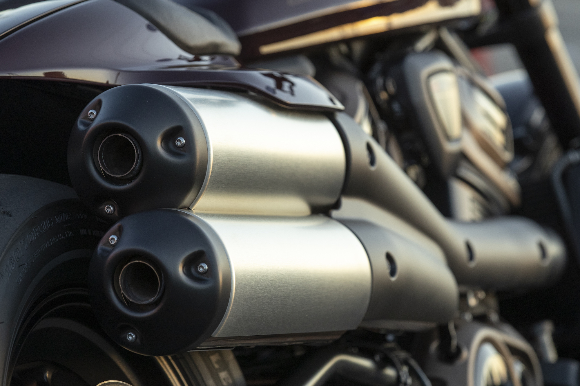 The new bike takes styling cues from Harley-Davidson’s illustrious racing and cultural legacy—high swept pipes of a dirt tracker, wide front wheel of a bobber, low, muscular stance of a quarter-mile dragster—and fuses everything into a two-wheeled equivalent of Khabib Nurmagomedov.